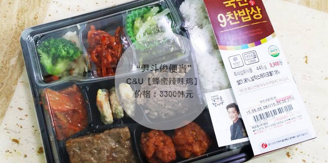 在电视剧《一起用餐吧2》中Beast成员尹斗俊大显吃功,每一道菜都吃的那么津津有味。C&U便利店在电视剧大热时与电视剧方合作推出了各种“尹斗俊便利美食”,而“尹斗俊便当”就是其中的一个。只要购买便当还可以拿到尹斗俊小贴纸~蜂蜜辣味鸡便当内有蜂蜜味和甜辣酱味2种主菜,喜欢鸡肉的人都爱得不得了!